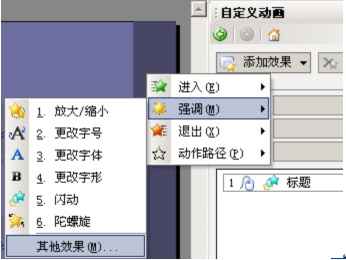 在“添加效果”中点击“强调”→再点击“其他效果”,如图: