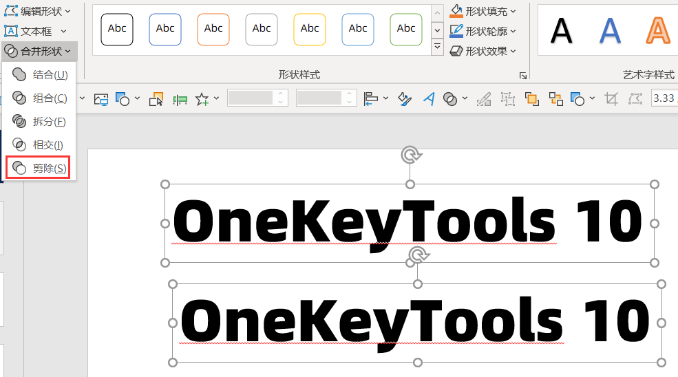 复制一份文本框,选中两个文本框,单击格式选项卡-合并形状-