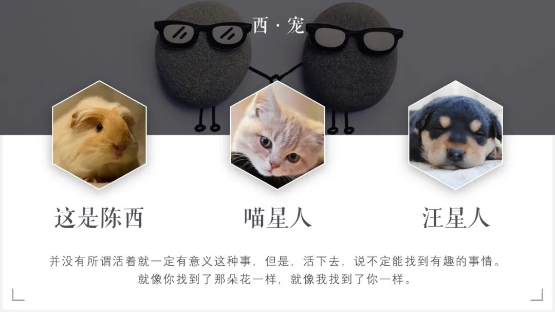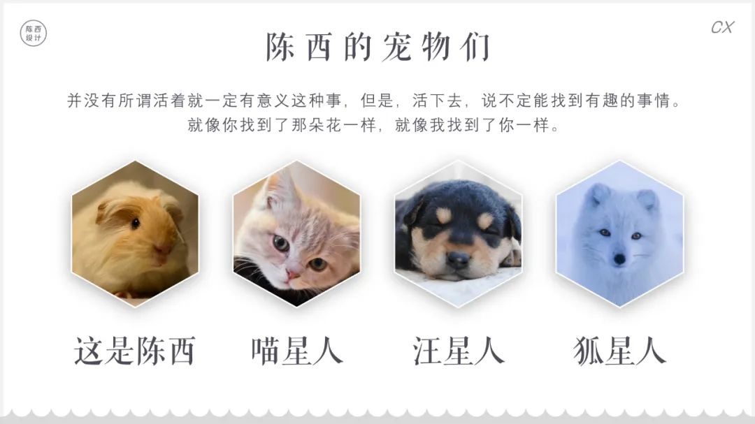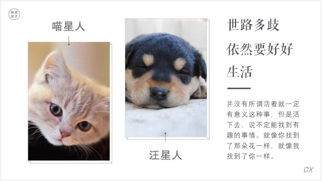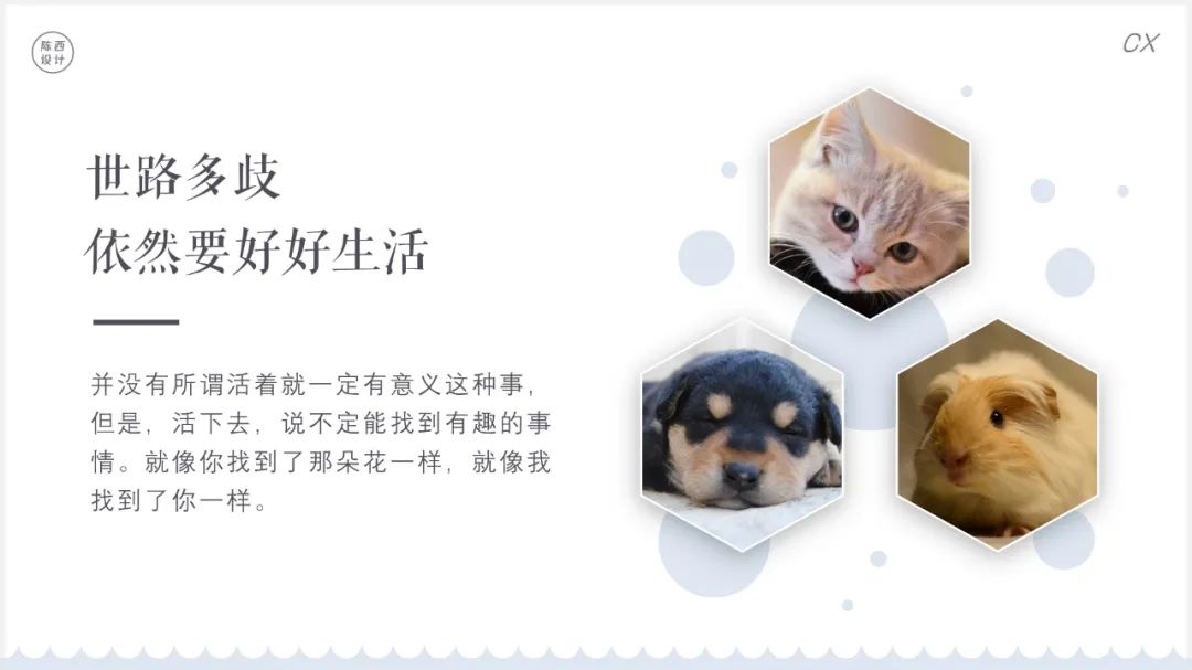 今天找到了一些比较可爱的图片,于是用PPT随手设计了几个图文排版的效果页面。