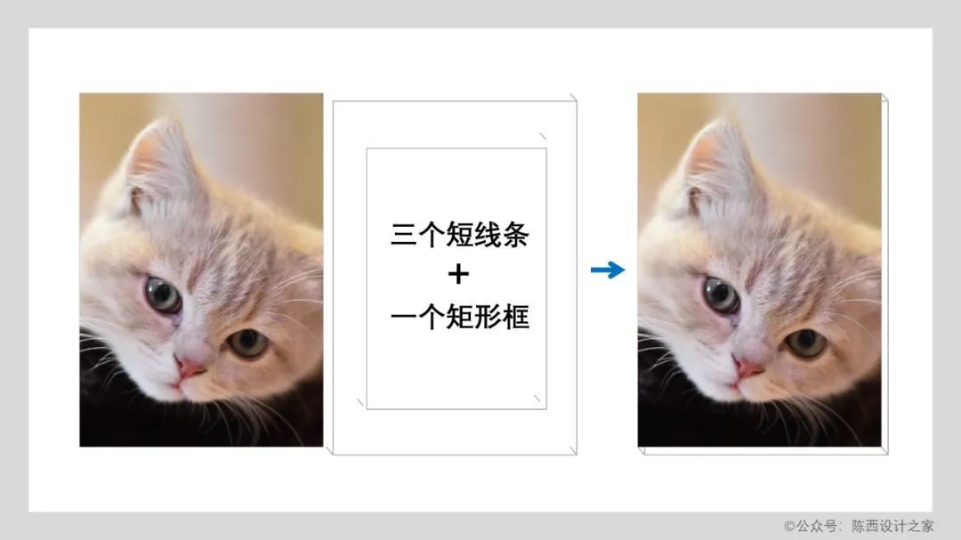 这种立体的图片效果其实就是矩形框结合三个短线条再搭配图片设计的。