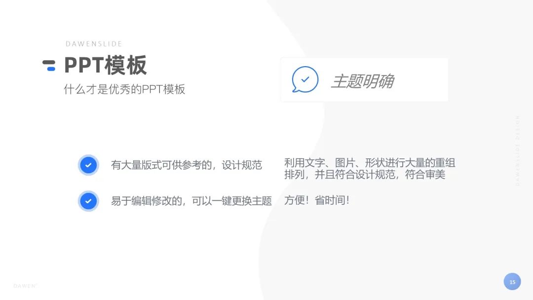 在看过上千种PPT模板设计后,不难发现,优秀的PPT模板共有的两大特点:第一,有大量版式可供参考的,设计规范;第二,易于编辑修改的,可以一键更换主题。