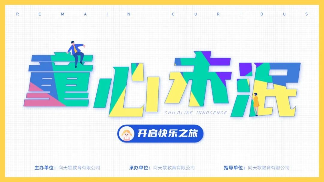 下图用到布尔运算技法的地方仍是文本部分。首先绘制一个彩色的矩形色块,再将“童心未泯”进行文字矢量化处理,最后先选中色块再选中文字,点击绘图工具-格式-合并形状-相交,即可做出下图的效果。
