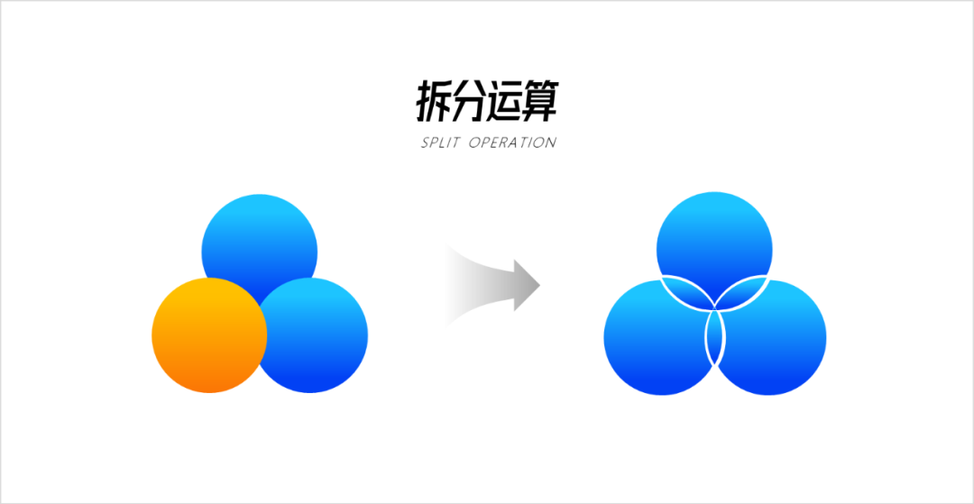就是将两个及两个以上的元素沿着相交的部分进行拆分,把它们变成单独的元素,即形成若干个新形状