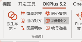 OKPlus目前最新版是5.2,新增了 同心复制、复制换文、编号递进 这三个功能,并优化完善了现有的几个功能。本次分享我先介绍一下复制换文的用法。