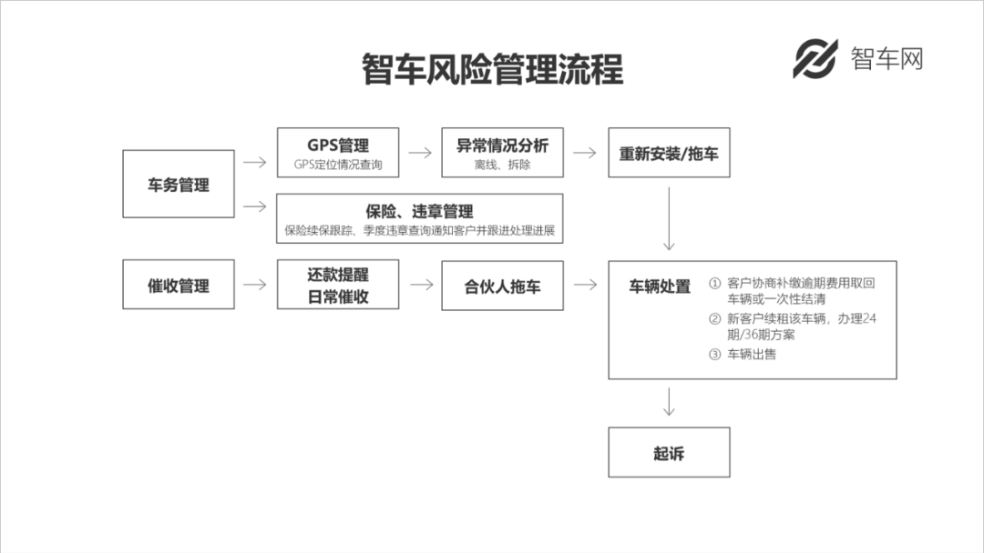 首先,可以看到这页的内容主要由一个管理流程图和“车辆处置方案”组成,并且流程图中也包含一个“车辆处置”的流程,就可以将“车辆处置方案”的内容和流程图结合起来,也就是下面这样