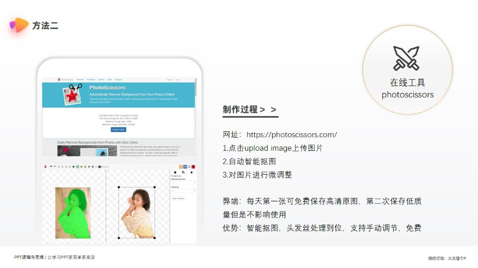 优势:智能抠图,头发丝处理到位,支持手动调节,免费