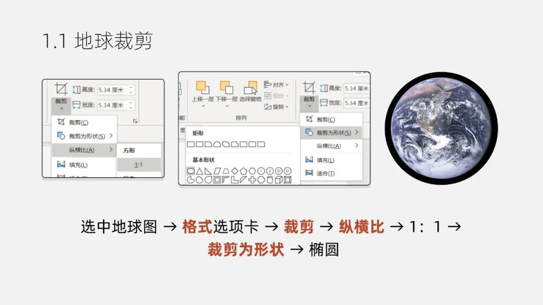 第一步,先将地球图的比例设置为1:1,然后裁剪为椭圆,这样就得到正圆的裁剪区域