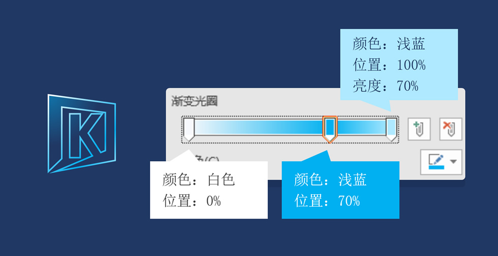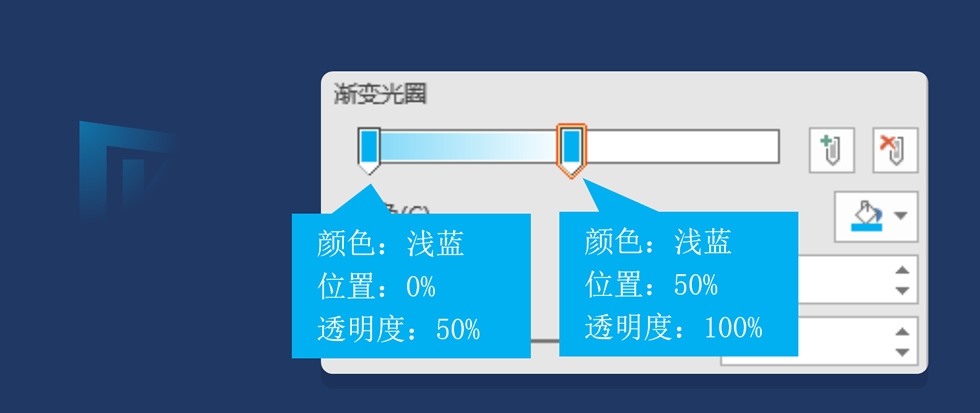 切换到线条 → 渐变线 → 角度:45° → 宽度:2.5磅 → 光圈参数如图