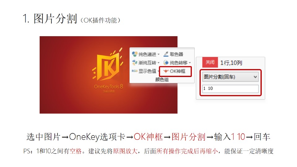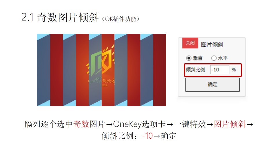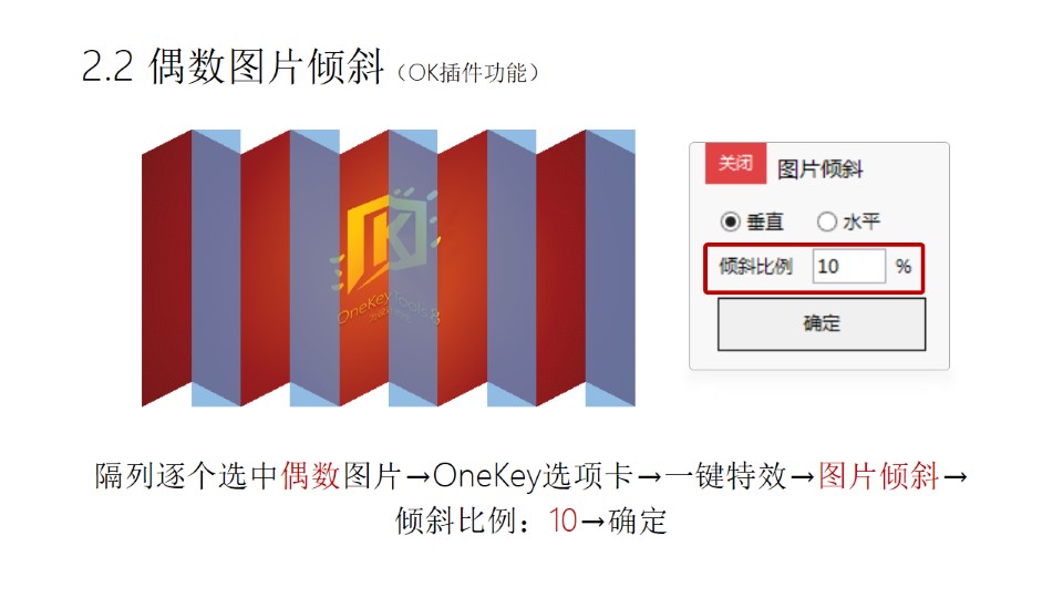 :PPT图片折叠:0. 准备一张图片;1. 图片分割(OK插件功能);2.1 奇数图片倾斜;2.2 偶数图片倾斜;3. 降低偶数图片亮度扩展:组合并转图。