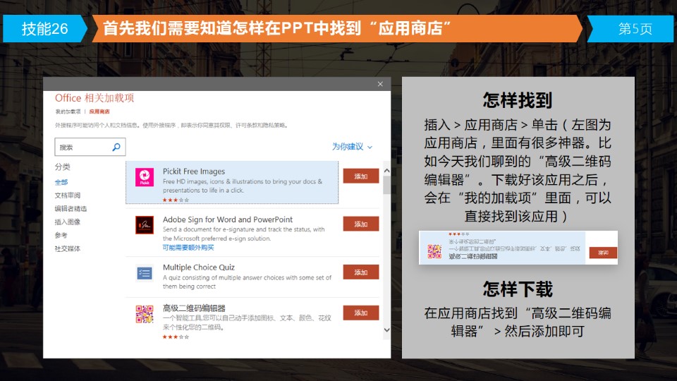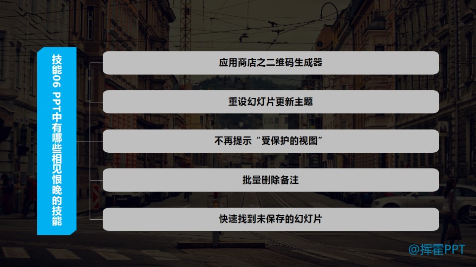 :PPT中有哪些相见恨晚的技巧06,由于技巧太多,所以我会五期完成,总共25个相见恨晚的技巧。如果有启发,请让更多的人知晓。技能26:应用商店之二维码生成器;技能27:重设幻灯片更新主题;技能28:不再提示“受保护的视图”;技能29:批量删除备注;技能30:快速找到未保存的幻灯片。