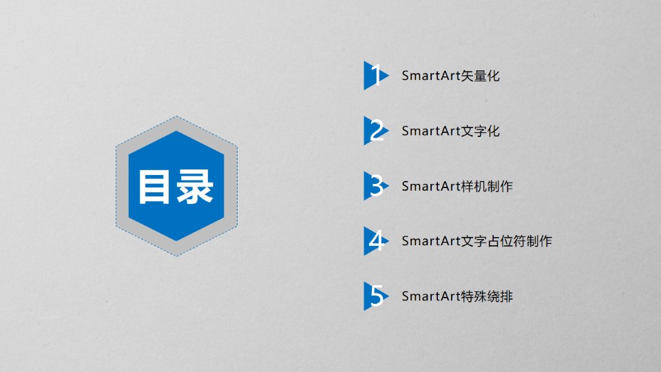 :SmartArt早该这么玩,目录:1、SmartArt矢量化;2、SmartArt文字化;3、SmartArt样机制作;4、SmartArt文字占位符制作;5、SmartArt特殊绕排。