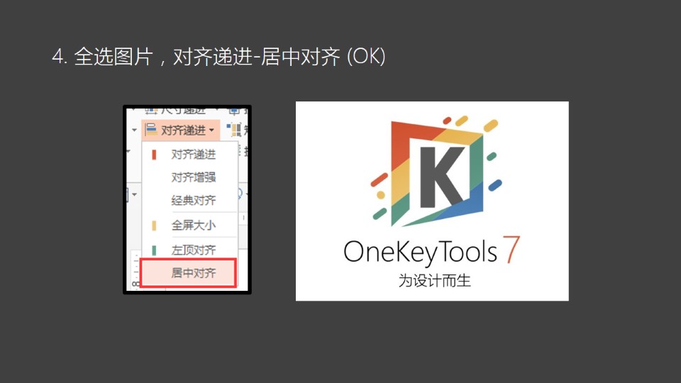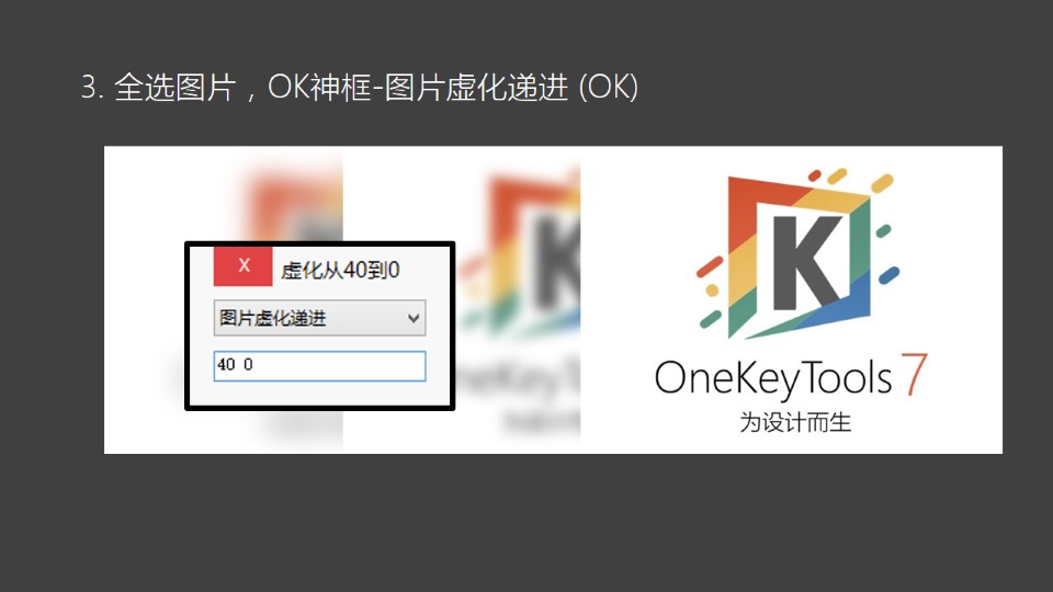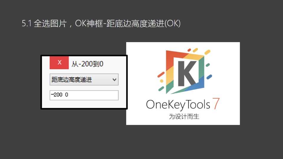 :距底边高度的运用:1. 插入一张图片;2. 选中图片,Ctrl+D复制2次;3. 全选图片,OK神框-图片虚化递进 (OK);4. 全选图片,对齐递进-居中对齐 (OK);5.1 全选图片,OK神框-距底边高度递进(OK);5.2 全选图片,三维旋转-预设选前透视,Y旋转315°,透视90°;5.3 全选图片,三维格式-材料选亚光效果(第一个)。