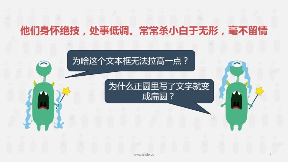 :神功盖世的文本框和形状,在PPT江湖中,有两个绝世大侠,行踪不定性格怪异,他们分别叫做……形状,文本框,他们身怀绝技,处事低调。常常杀小白于无形,毫不留情,为啥这个文本框无法拉高一点?为什么正圆里写了文字就变成扁圆?
