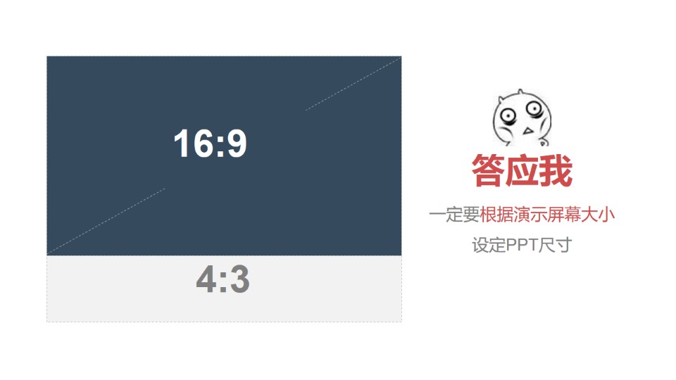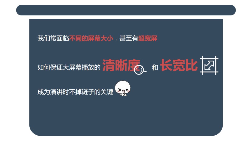 :为什么演示中你的PPT模糊变形了,我们常面临不同的屏幕大小,甚至有超宽屏,如何保证大屏幕播放的 清晰度 和 长宽比,成为演讲时不掉链子的关键,幻灯片默认尺寸, 960*720 像素(2003-2010默认尺寸), 3840*2160 像素 ,2013-2016默认尺寸),若默认 4:3 尺寸投影在 16:9 宽屏上,PPT变形扑街啦!!