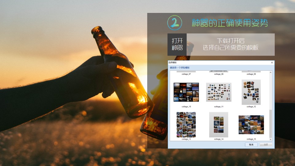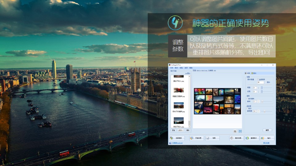 :拼图型封面如何制作?1、你需要一个神器;2、神器的正确使用姿势:打开神器,下载打开后选择自己所需要的模板,导入图片,选择完成模板后,淡季左方添加图片,批量添加所需图片,调整参数,可以调整图片间距,使用图片数目以及旋转方式等等,不满意还可以重排图片或随机分布,导出即可。