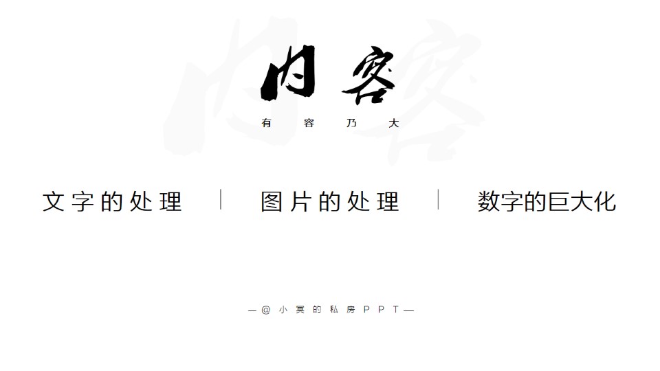 :设计,为内容而服务,聚焦你的PPT内页,文字的处理,图片的处理,数字的巨大化。
