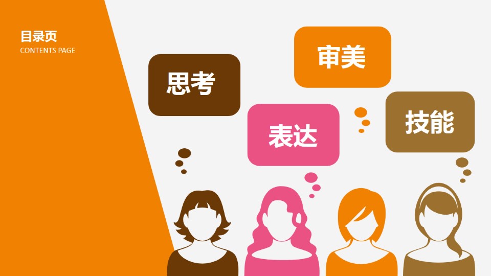 :揭秘PPT真想,布衣公子系列PPT新教程之一,路演、汇报、会议、宣传,PPT都能干些啥?目录页:思考、表达、审美、技能。思考:问题一、为什么要学习PPT?必备技能,人人都要会;基本礼貌,是对观众的尊重;个人品味,代表品牌形象;职场阶梯,助理职场之路。
