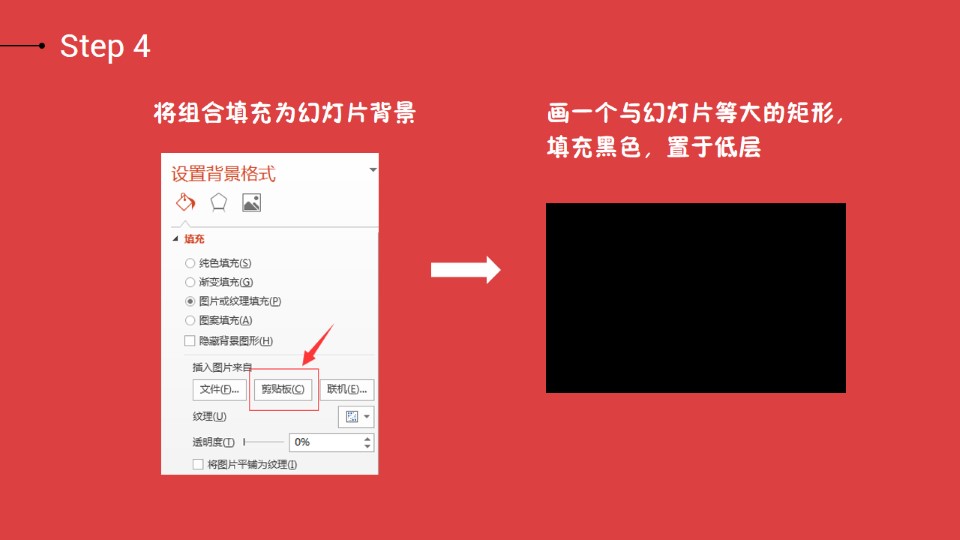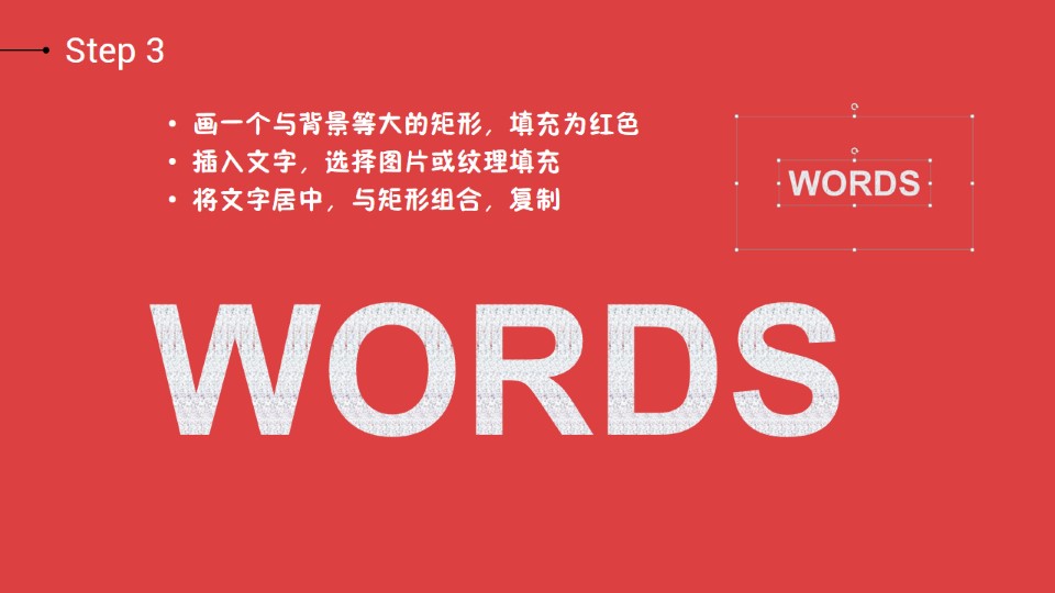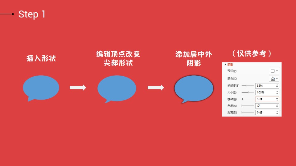 :五步打造重叠标题效果,BY:@3人_行,Step 1:插入形状,编辑顶点改变尖部形状,添加居中外阴影;Step 2:绘制多个并摆放如下,根据所在位置可以适当微调阴影大小和角度;Step 3:画一个与背景等大的矩形,填充为红色,插入文字,选择图片或纹理填充,将文字居中,与矩形组合,复制;Step 4:将组合填充为幻灯片背景,画一个与幻灯片等大的矩形,填充黑色,置于低层;Step 5:选中所有图形,设置为幻灯片背景填充。