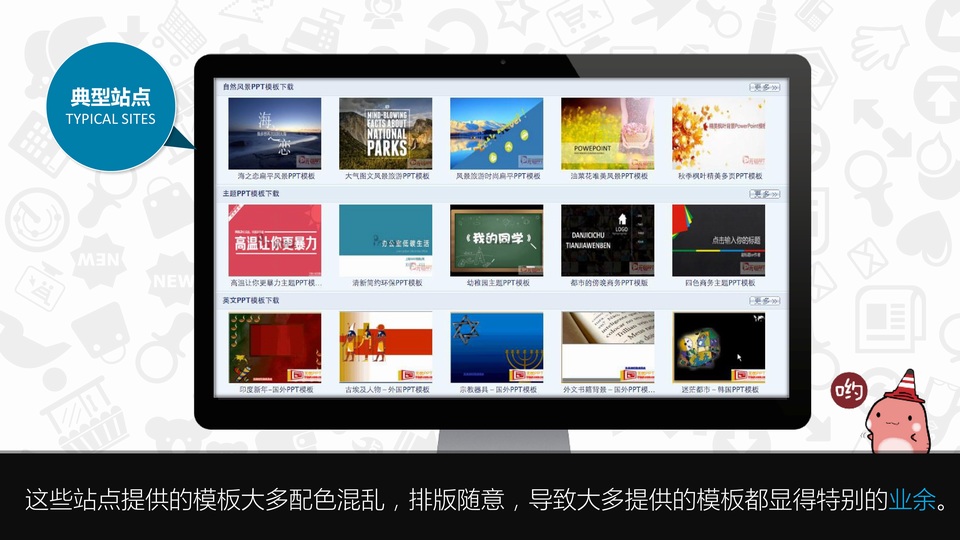 :PPT模板全使用指南之下载篇,每当我们在搜索引擎检索“PPT模板”时,会发现一个非常有趣的情况;如果我们点击搜索引擎反馈的结果中,排名靠前的几个站点…这些站点提供的模板大多配色混乱,排版随意,导致大多提供的模板都显得特别的业余;我将这种情况称为 “永远摆脱不了的ni图范儿”,关于ni图范儿的一些解释。较为晦涩且与本篇教程关系不大,就不展开了。