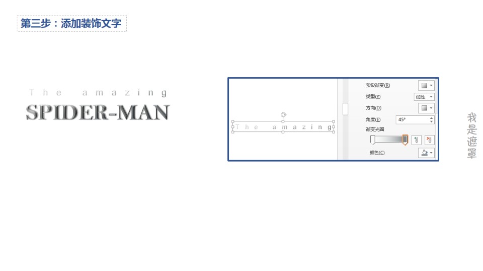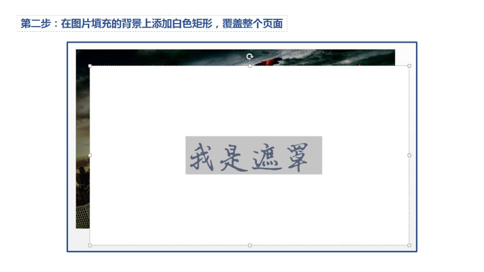 :第一步:对界面背景进行图片填充,第二步:在图片填充的背景上添加白色矩形,覆盖整个页面,第三步:添加装饰文字 ,第四步:“拯救地球”幻灯片背景填充(布尔运算-相交,这是关键),第五步:选用墨迹素材,附件会赠送墨迹素材用途:幻灯片背景填充)。