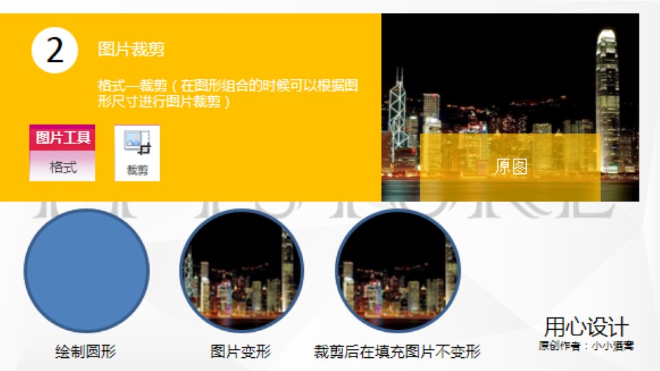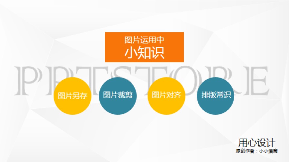 :PPT图片高级运用,简易快速上手教程(3),图片运用中小知识,图片另存,图片裁剪,图片对齐,排版常识;图片另存:TuPian另存很简单,单击图片右键选择另存为图片即可,在另存为之前可能会设置后另存;图片裁剪:格式—裁剪(在图形组合的时候可以根据图形尺寸进行图片裁剪),绘制圆形,图片变形,裁剪后在填充图片不变形。