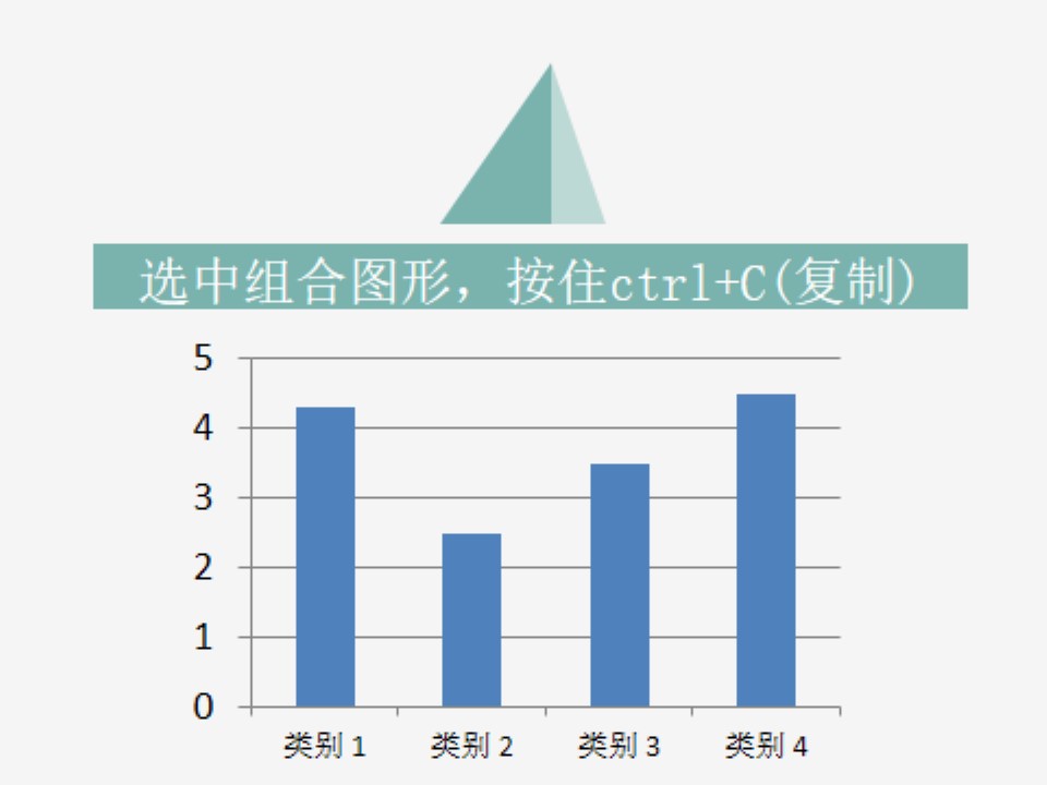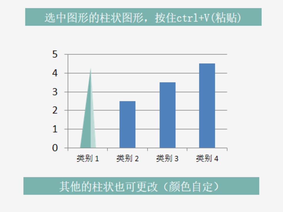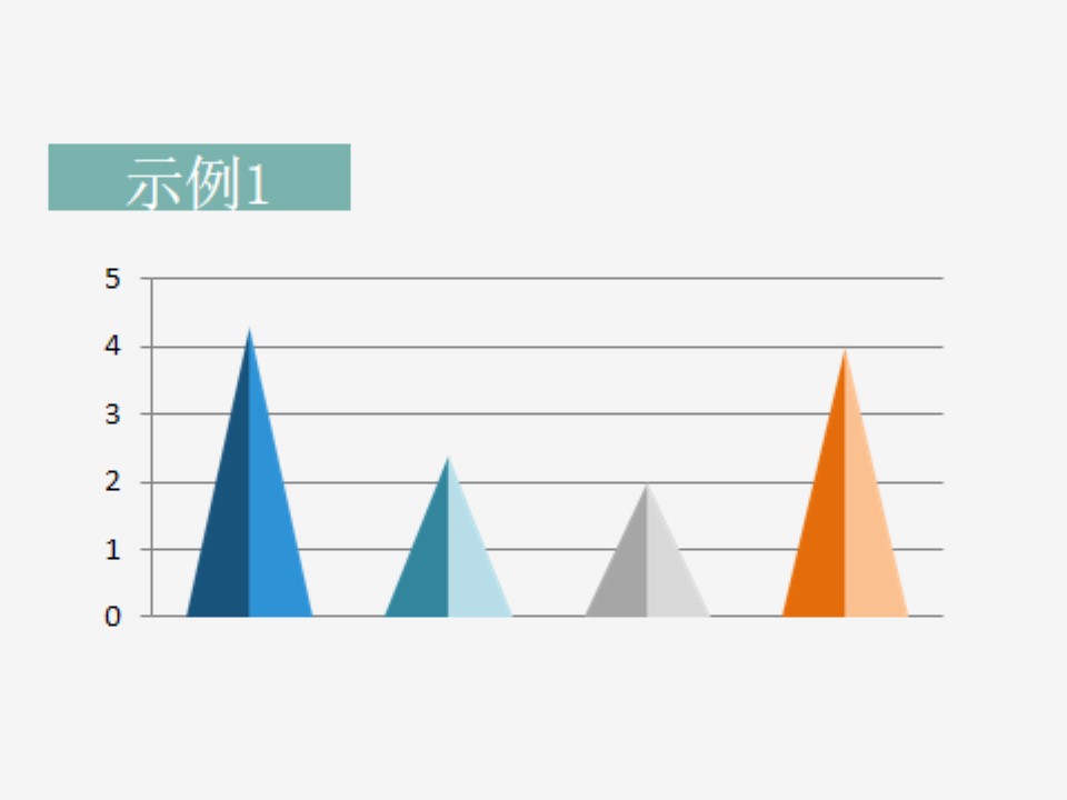 :PPT图表特殊图形简介,在上述三个示例后,我们简介如何制作,插入图表,选择柱状图第一个并简单修改,插入三角形---并如上图修改,复制并淡化颜色,在组合在一起,选中组合图形,按住ctrl+C(复制),选中图形的柱状图形,按住ctrl+V(粘贴),其他的柱状也可更改(颜色自定),在简单修改长宽比以及柱状间隔,创新图表制作完毕,引升出来可以更加多样化。