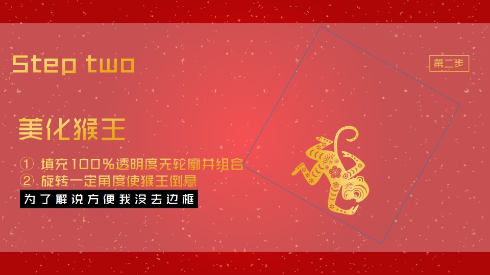 :大家好,我是小龙,今天,小龙和猴王为大家奉上一个小动画教程,使用工具:Office2010,动画大师,安装教程就不甩出来了,找度娘,素材:猴王一枚,为猴王补位,插入矩形,Ctrl+Shift+鼠标,确保矩形中心在尾部,美化猴王,填充100%透明度无轮廓并组合,旋转一定角度使猴王倒悬,为了解说方便我没去边框。