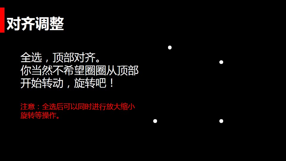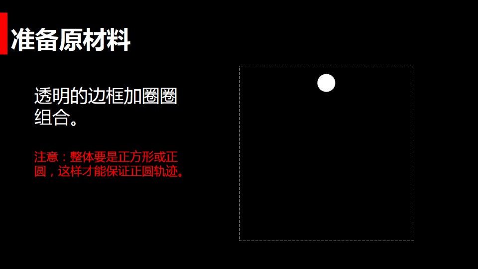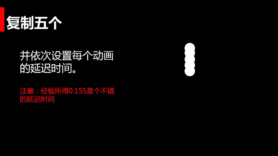 :准备原材料,透明的边框加圈圈组合,注意:整体要是正方形或正圆,这样才能保证正圆轨迹,添加陀螺旋动画,将平滑开始与平滑结束,的时间各设置为总动画,时长的一半,并且重复运动,注意:平滑开始与平滑结束的设置,才是整个动画的关键,复制五个,并依次设置每个动画,的延迟时间,注意:经验所得0.15S是个不错,的延迟时间,对齐调整,全选,顶部对齐,你当然不希望圈圈从顶部,开始转动,旋转吧!注意:全选后可以同时进行放大缩小,旋转等操作。