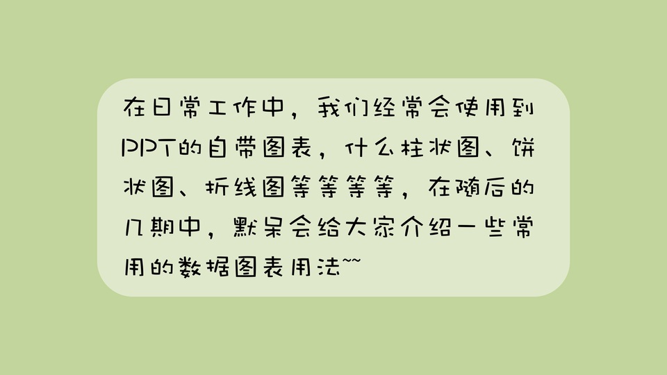 :中秋国庆 哪里玩耍,哪也不去 在家带娃,好 久 不 见! 有木 有想 我 ?各 位 老爷 、 姑奶 奶 们 ,今天 我 们 讲 解的 主 题 是 柱状图,在日常工作中,我们经常会使用到 PPT的自带图表,什么柱状图、饼 状图、折线图等等等等,在随后的 几期中,默呆会给大家介绍一些常 用的数据图表用法~~