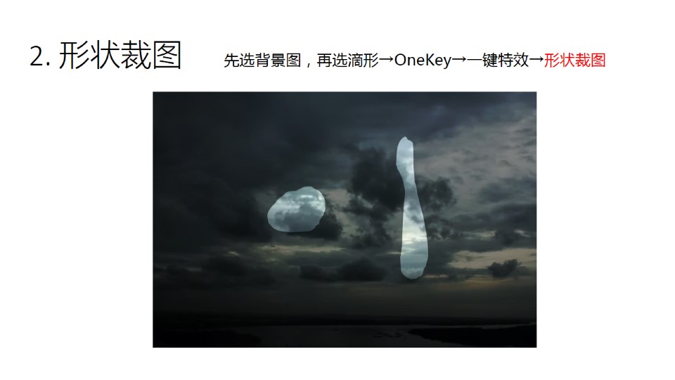 :雨滴从未如此逼真,0. 素材准备1. 绘制滴形-鼠绘,插入选项卡→形状→任意多边形→按住鼠标左键不放绘制,1. 绘制滴形-去掉线条,选中两个滴形右键→设置形状格式→线条→无,2. 形状裁图,先选背景图,再选滴形→OneKey→一键特效→形状裁图,3. 设置阴影-黑阴影,全选滴形右键→设置形状格式→阴影→预设→内部右上角。