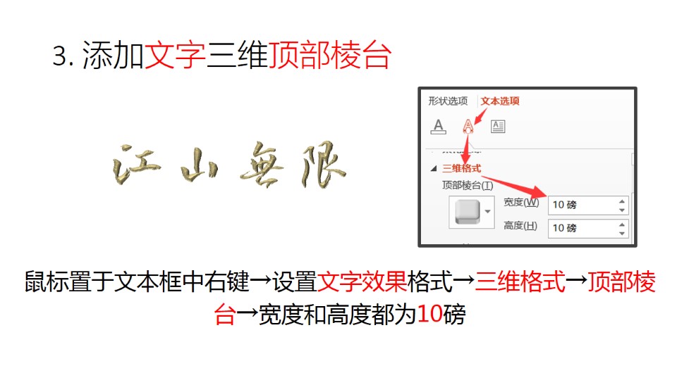 “江山无限”四步打造浮雕字——ppt字体设计教程
