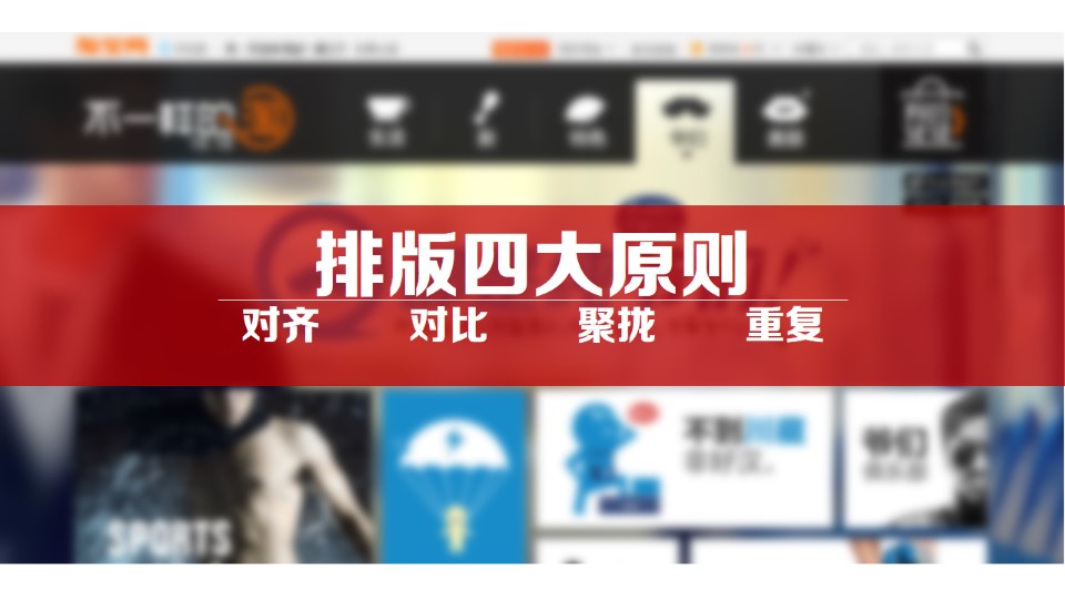 :淘宝双十二,教给我的PPT排版, 要不要来点PPT?淘宝其实也送知识哦~排版四大原则,对齐,对比,聚拢,重复,1.那些看得见的对齐;细节,决定成败!图是三部分,有木有?2.用什么制造对比;模糊背景vs纯色字、图,有好图,你看不看?