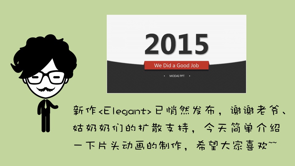 :默呆P事儿,第四话,铺面而来的老爷,奶奶们,今天说的主题是“灵动”,2015新作《elegant》已悄然发布,谢谢老爷姑奶奶们的扩散支持,今天简单介绍一下片头动画的制作,下午大家喜欢。