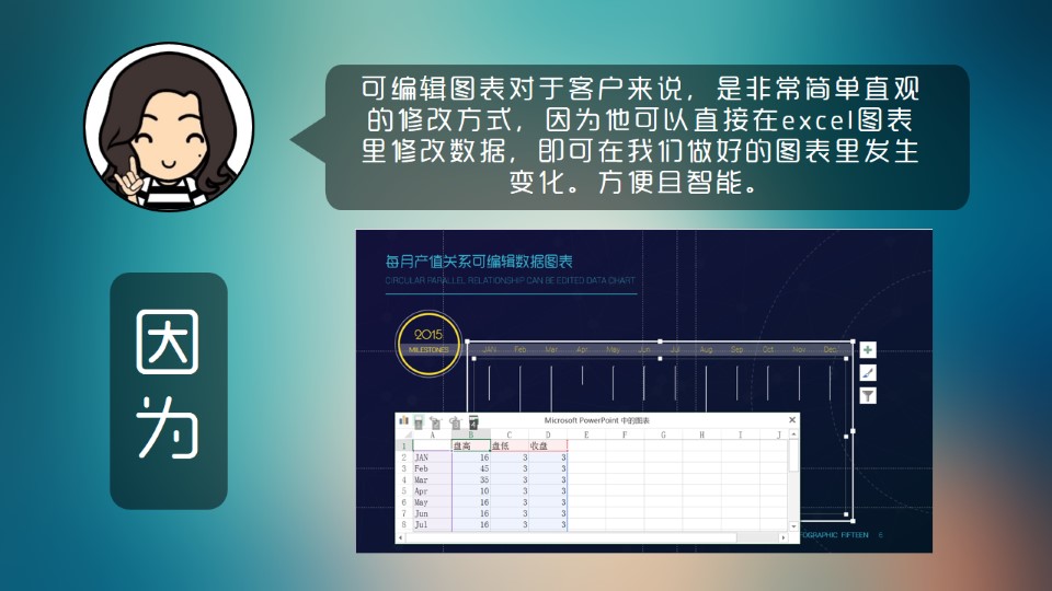 :聊聊iOS风可编辑图表,最近……可编辑图表在p圈刮起一阵狂热的龙卷风!各式各样风格的图表让您目不接暇~这是为什么呢?因为,可编辑图表对于客户来说,是非常简单直观的修改方式,因为他可以直接在excel图表里修改数据,即可在我们做好的图表里发生变化。方便且智能。