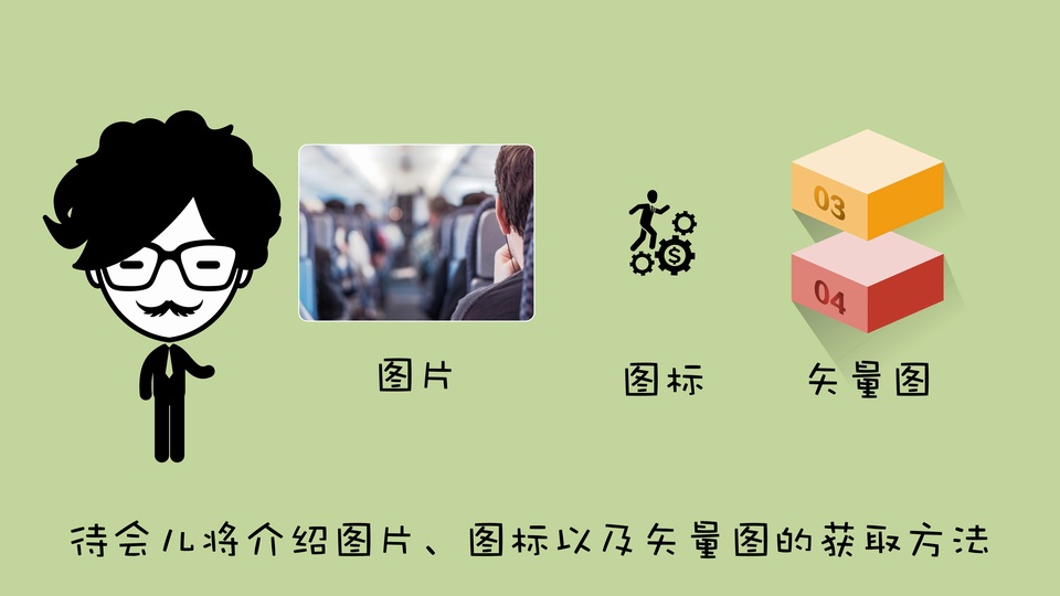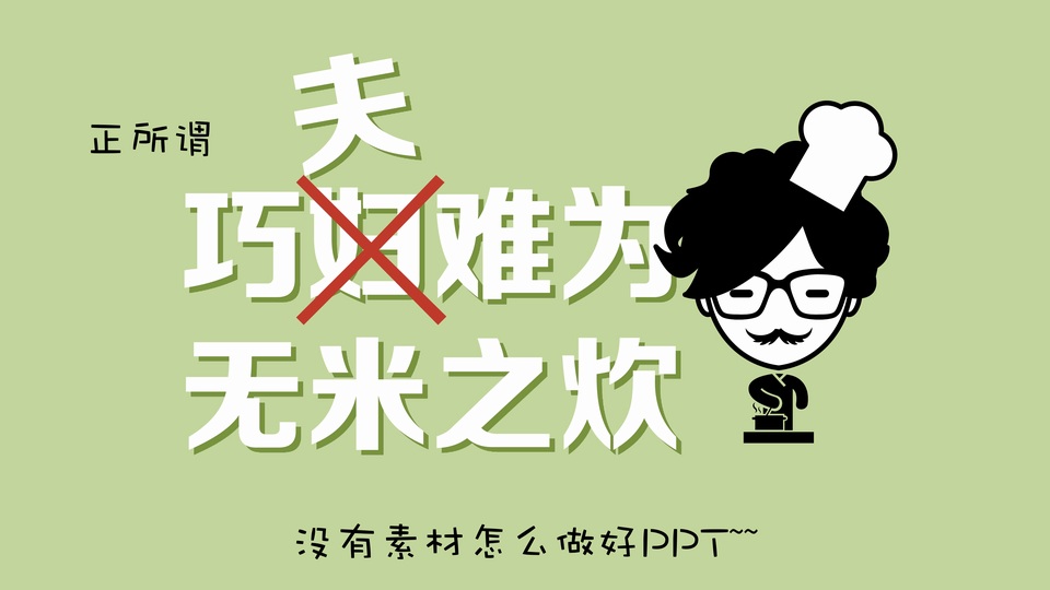 :默呆P事儿第六话,扑 面 而 来的 老爷 、 姑奶 奶 们 ,今 天 讲 解的 主 题 是素材,正所谓巧妇难为 无米之炊,没有素材怎么做好PPT~~今天,我们来聊一聊,如何捕获素材~~图片 图标 矢量图,待会儿将介绍图片、图标以及矢量图的获取方法。