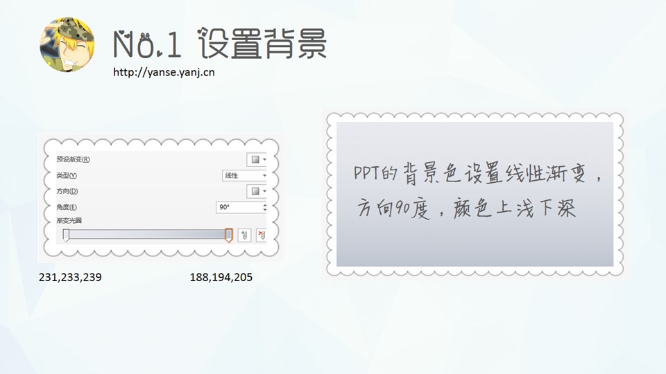 :新人也学得会的PPT数据图表美化之微立体环形图,NO.1:设置背景,ppt的背景色设置线性渐变,方向90度,颜色上浅下深;NO.2:插入图表,如图所示,插入一个圆环图表,将标题、网格、图例等去掉后,进行设置,只留两行数据具体数值如图所示。