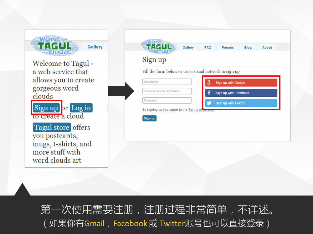 :文字云制作全攻略,最近很多同学问我这种带中文的文字云怎么弄的,其实,很简单,你需要一个神器,一个支持中文的神器神器一,TAGUL,这是一个在线文字云工具,网址tagul.com,第一次使用需要注册,注册过程非常简单,不详述。