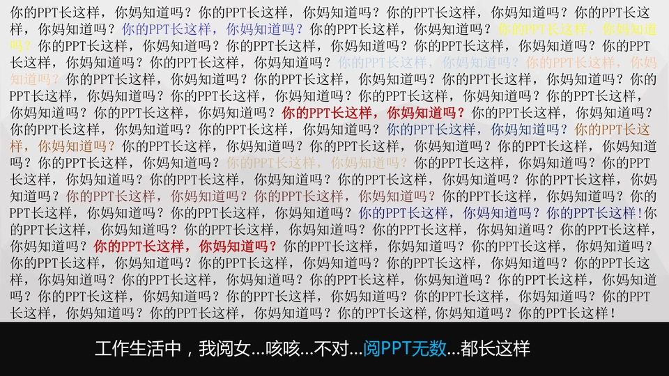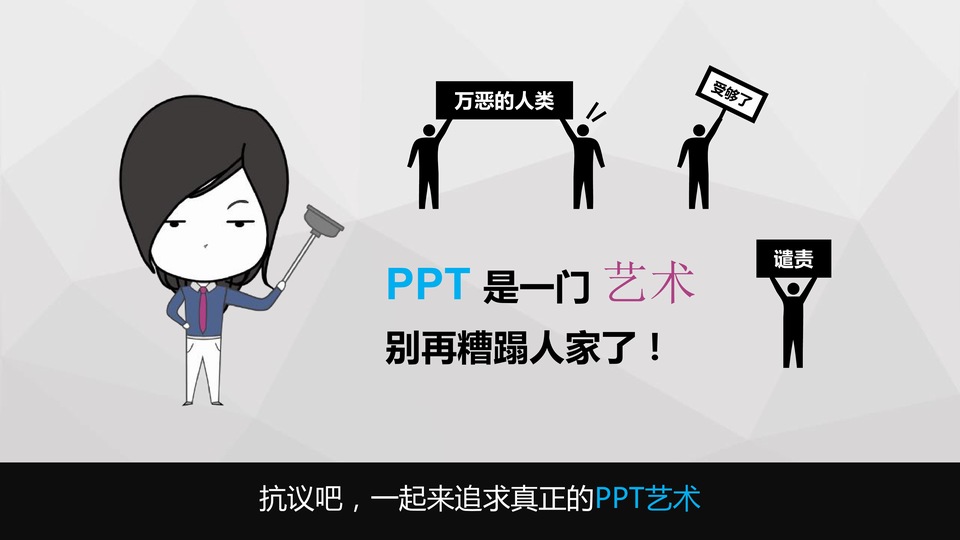 :第 2 季:观点可视化,工作生活中,我阅女…咳咳…不对…阅PPT无数…都长这样,这是Word,这……还是 Word,小样,别以为换了个马甲,我就不认识你了!PPT 是一门 艺术,别再糟蹋人家了!抗议吧,一起来追求真正的PPT艺术,PPT,到底什么样的才是真正的,其实,PPT的老东家微软早已经明确告诉我们了。