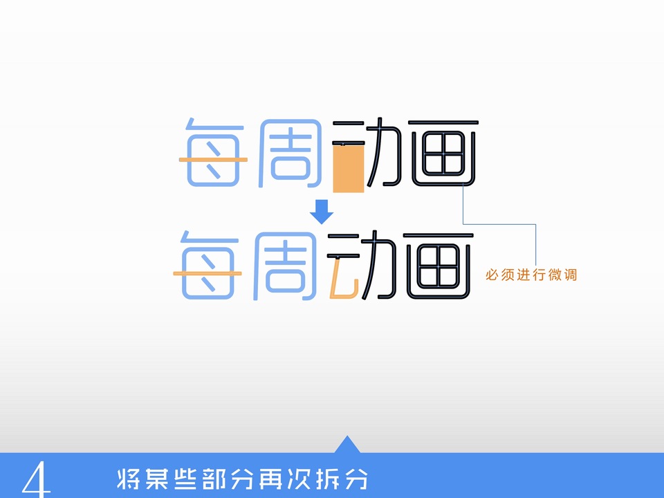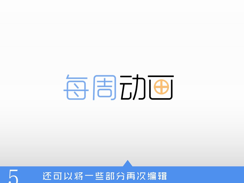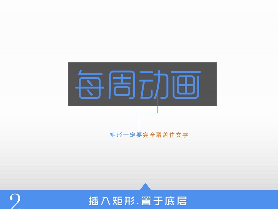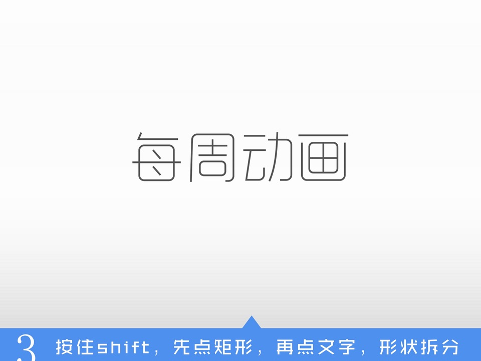 :每周动画——番外篇,6步做出动画封面,1、先插入一个文本框,输入文字,2、插入矩形,置于底;3、按住shift,先点矩形,再点文字,形状拆分;4、把已经变成可编辑形状的文字加粗,将某些部分再次拆分;5、还可以将一些部分再次编辑;6、添加动画,完成。