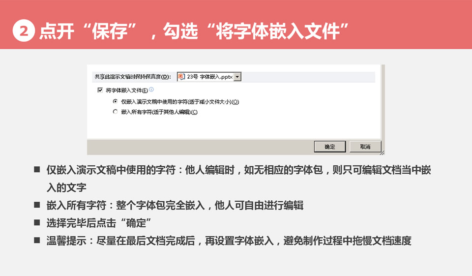 :字体嵌入,1、打开“开始”选项开,点击“选项”—“保存”;2、点开“保存”,勾选“将字体嵌入文件”。