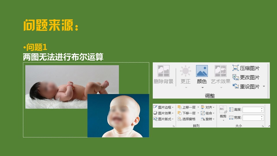 :形状图片填充的两种妙用教程,问题来源:·问题1:两图无法进行布尔运算;问题2:图片透明度无法调节;其实,只需要一招,图片装入形状,方法1、画一个和图片等大的形状,复制图片,设置形状填充—插入图片来自剪切板。