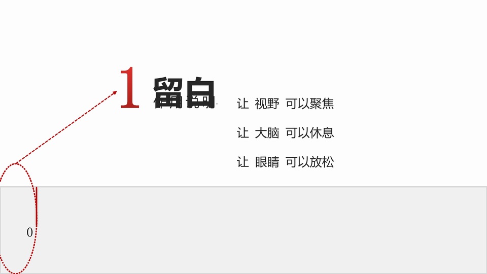 :1、留白,让 视野 可以聚焦,让 大脑 可以休息,让 眼睛 可以放松;2、PPT向EXCEL 学习对齐;3、重复,一致的 模板,一致的 排版,一致的 字体, 一致的 配色,一致的 动画,一致的 处理方式;4、聚拢,相关内容 是否汇聚,无关内容 是否分离,段落层次 是否区隔,图片文字 是否协调。
