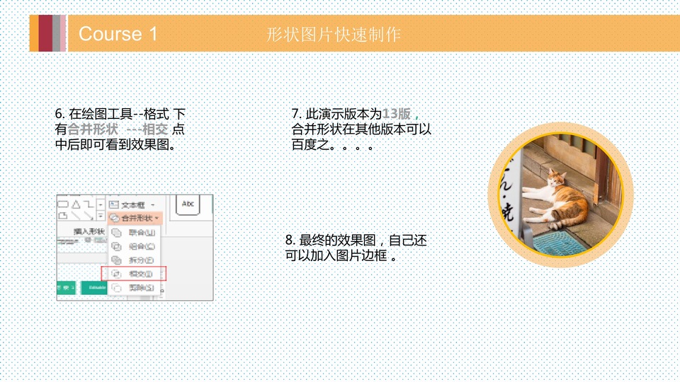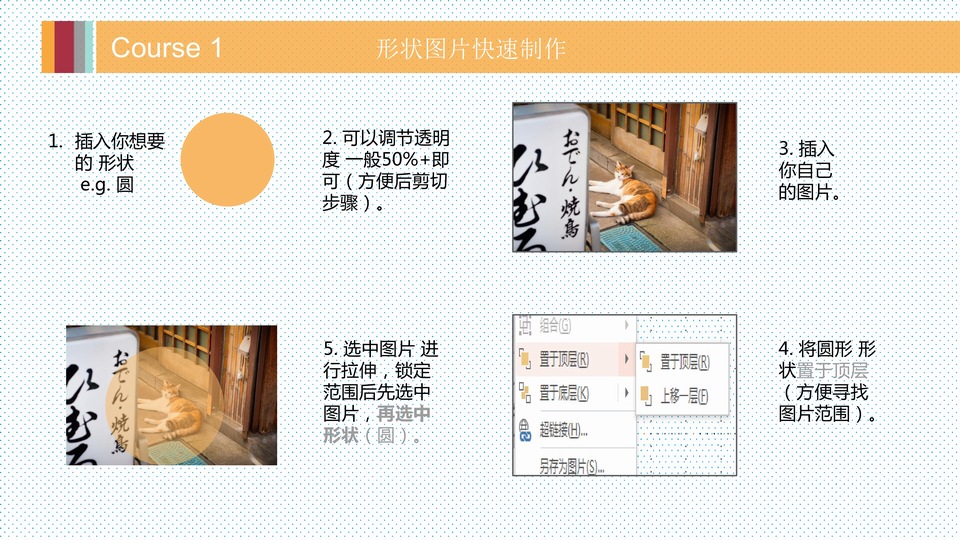 :关于模板替换的几个建议,教程,源于对细节追求完美成功,Course 1 :形状图片快速制作,插入你想要的形状 e.g. 圆 。