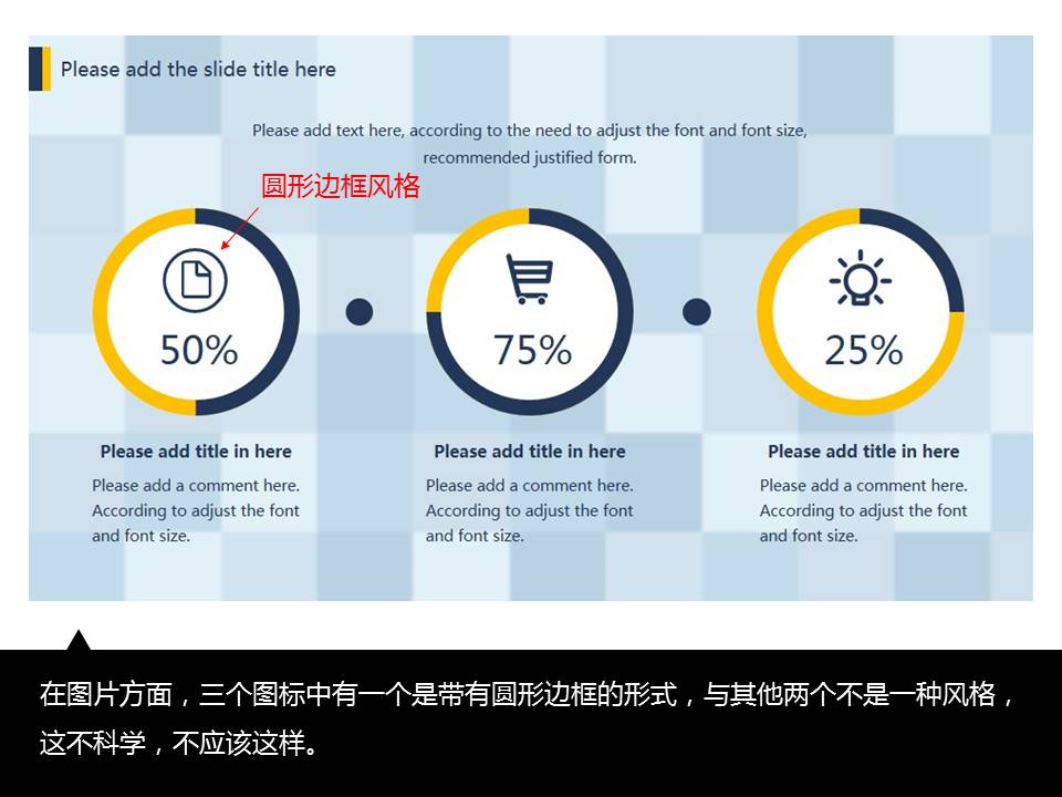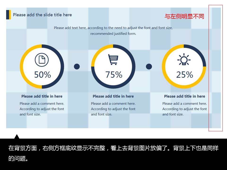 :我就是要做细节控,我是如何处理ppt设计中的细节问题,这张已经完成的ppt模板,图文元素比较完整,排版比较规范,看上去似乎没有什么问题了,但是对于细节控来说,这还不够!下面细细分解。