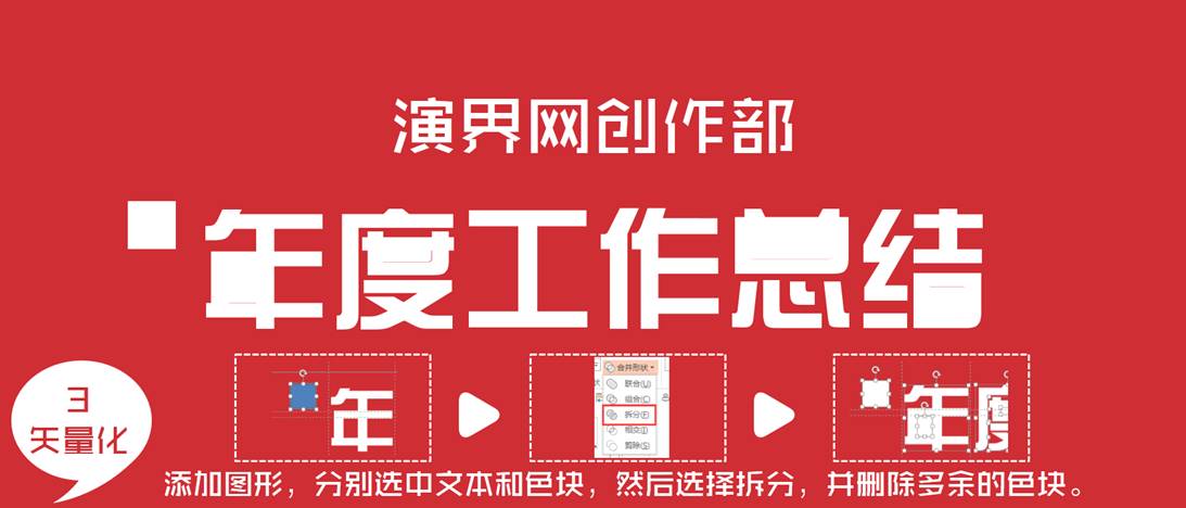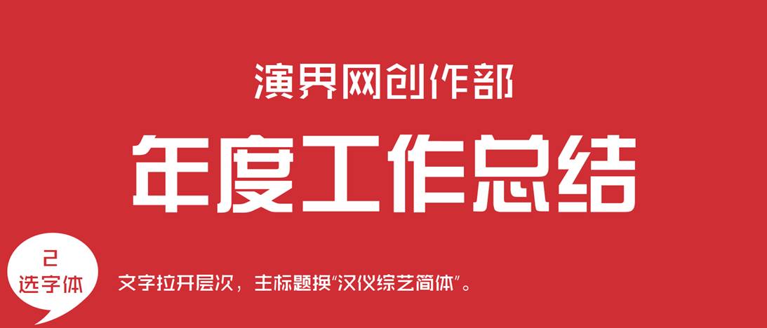 :ppt做淘宝式标题,加底法,演界网创作部,年度工作总结字体创意教程,连字体,文字拉开层次,主标题换“汉仪综艺简体”.. ...
