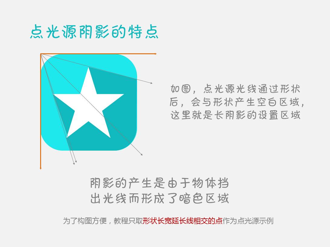 :形状长阴影,点光源辅助矢量工具,矢量可编辑,图片,点光源阴影的特点,如图,点光源光线通过形状后,会与形状产生空白区域,这里就是长阴影的设置区域... ...