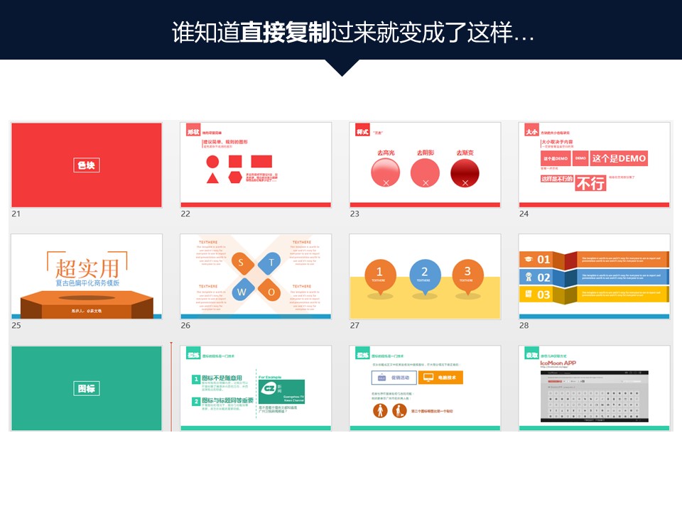 :跨主题修复幻灯片不走样,花钱买了个模板,想把其中的几页复制到自己的ppt里,谁知道直接复制过来就变成了这样... 不仅颜色、字体变了、貌似连版式也变了!... ...