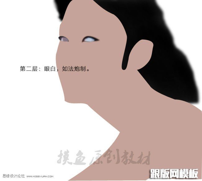 2、眼睛部分的制作:三层法,即:眼底、眼白、眼球,用模糊工具按不同部位加大减少模糊。用加深,减淡工具精修。