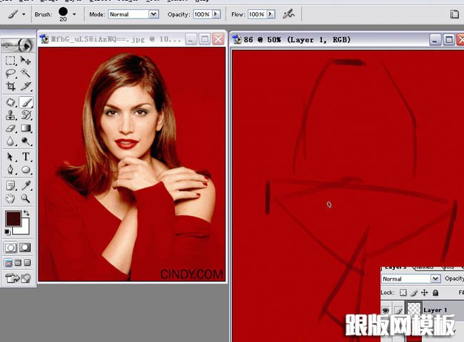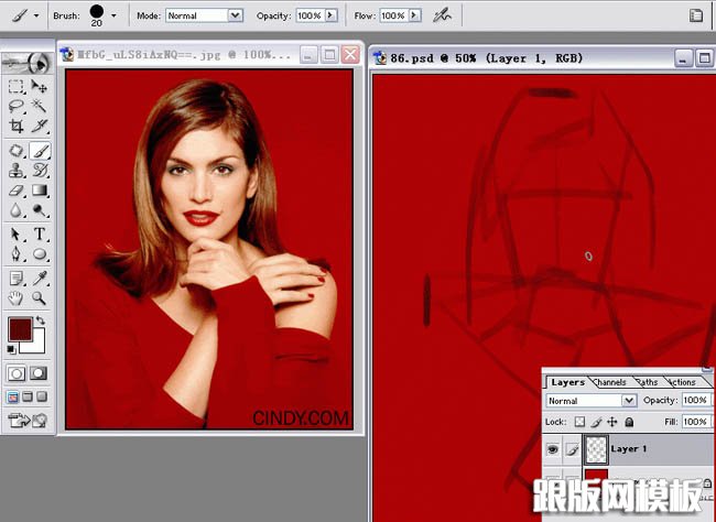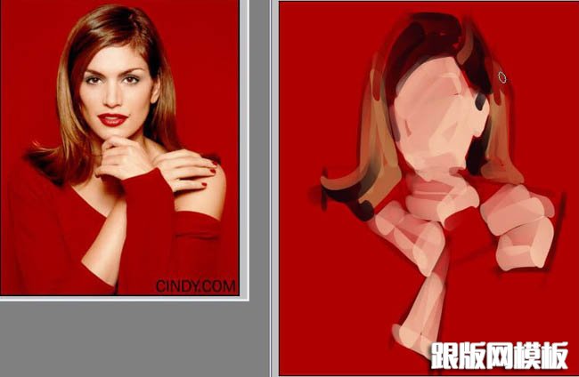 7、合并图层,画出最基本的五官色块。不要过多纠缠于细节,多看局部之间的关系和比例位置。(为了节约显示空间,我按SHIFT+TAB隐藏调板)