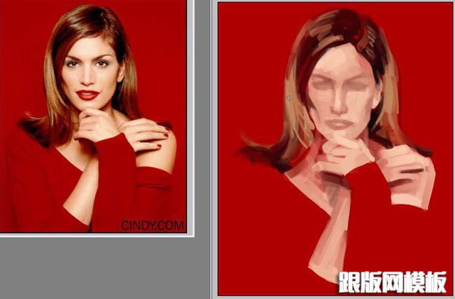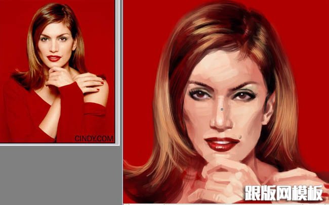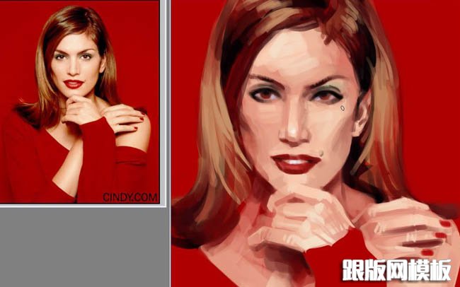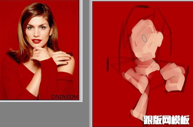 8、深入五官的刻画,画出嘴唇的颜色,画出眼睛的大概轮廓。
